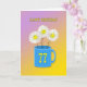 Lycklig leende blommor i daisy i ett ljusblått mugg. 77 år är i gult vid mugg. Ett härligt sätt att önska en 77-årsdag för lycklig.