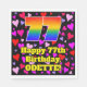 Den här roligten och den glatta födelsedagen har den pappra napkin-designen ett stort nummer "77" med en regnbågsspektrumövertoning som inspirerade mönster, tillsammans med meddelandet "77:e födelsedagen i Lycklig" och ett redigerbart namn. Bakgrunden är en mönster av rosa, lila och röda hjärtformer av olika storlek. Uppslagna, vänliga pappra servetter som denna kan vara roligt att fira någons 77-årsdag. [~Z0000550]