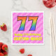 Den här sjuttonde pappra napkin-designen för 77-årsdagen har ett stort nummer "77" med ett färgstarkt regnbågsspektrum som inspirerar till gradient mönster. Det innehåller också budskapet "Lycklig 77:e födelsedag" och en personlig namn. Bakgrunden är en mönster av rand för ljus rosa rosa och mörk som innehåller levande hjärtformer av rosa. Födelsedag som pappra blöjor som denna kan vara roligt till använda vid ett firande som hålls för att hedra någon som firar sin sjuttiosjunde födelsedag. [~Z0000417]