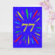 Ett explosivt 77-årskort! Vilket underbart sätt att skicka födelsedagshälsningar. Numret 77 i klar gult med en explosion av ljusa färger stjärnor.