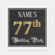 Den här finare och elegantens födelsedag kallas papper napkin-design för en personlig namn och meddelandet "77:e Födelsedagsfesten". Det stora talet "77th" har faux/imitation guld-inspirerad färgning mönster, ord "Födelsedagsfest" är i lyxig text som heter stil och bakgrunden är färgad svart som standard (även om den kan anpassas). Opulenta, ornerade pappra blöjor av detta slag kan användas vid en födelsedagsfest/firande som hålls för att fira någons sjuttiosjunde födelsedag. [~Z0000565]