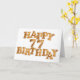 Ett födelsedagskort för roligten till den som kärlek kakar och det söta saken i livet. Brev som bildas av kakor gör ord Grattis på födelsedagen. Inuti finns en cookie med en bita från den och en rolig vers.