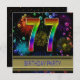 En roligt 77:e födelsedagsfest inbjudan med lycklig färg, bubblor och fyrverkerier. Ett underbart kort för alla åldrar. Se hela raden av inbjudningar och kort i min butik.