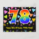 Framsidan av denna roliga, färgglada och spännande födelsedagskortdesign har ett stort nummer "78" med ett regnbågsspektrumgradientinspirerat mönster. Den har också meddelandet "Grattis på 78-årsdagen," och ett personligt mottagarnamn. Framsidan har dessutom ett färgglatt och livfullt kärleksfullt hjärtformigt bakgrundsmönster. Baksidan har ett anpassat födelsedagsgratulationsmeddelande, eller kanske kan rensas och lämnas tomt om ett meddelande ska skrivas för hand istället. Ett födelsedagskort som detta kan vara ett roligt sätt att skicka födelsedagsönskningar till någon som firar sin sjuttioåttonde födelsedag. Postkort som detta kan också användas för att bjuda in gäster till en födelsedags