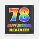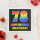 Den här roliga, roligt- och färgfulla pappra napkindesignen har ett stort nummer "78" och meddelandet "GRATTIS PÅ FÖDELSEDAGEN,", båda färgader med en regnbågsspektrumövertoning som inspirerade mönster, tillsammans med en modig mottagare av anpassade i gult namn. Bakgrunden är svart på färgad. Roligt, skräddarsydda pappra blöjor som denna kan användas vid en födelsedagsfest som hålls för att fira någons sjuttioåttonde födelsedag. [~Z0000476]