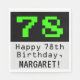 Den här roligten och den stora födelsedagen med den pappra napkin-designen har en stor grönt - stil nummer 78 på en svart färgad. Det innehåller också hälsning:s födelsedagsmeddelande "Lycklig 78:e födelsedagen" och ett namn som kan redigeras. pappra roligtar av det här slaget kan vara användbara vid en party som hålls för att fira 70-årsdagen av en datorprogrammerare, en datorhistoriker eller någon som verkligen gillar klassiskt videospel. [~Z0000404]