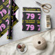Den här glatta och roligt födelsedagskalematerade pappra designen har ett stort nummer "79" med en ljus rosa och mörk rosa, mönster som innehåller hjärtformer. Det innehåller också hälsning:s födelsedagsmeddelande "Lycklig 79:e födelsedag" och anpassadets mottagare namn. Att packa pappert som detta kan användas när man ge en gåva eller present till heder för någons 79-årsdag. Det kan också vara ett val av roligt för någon som har en födelsedag som infaller på Alla hjärtans dag (Feb. 14) på grund av dess kärleksfulla hjärtsymboler och färg. [~Z0000435]