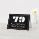 Utseendet från 1920-talet/1930 inspirerade klassiskt gratulationskort från födelsedag med en stor konst deco stil inspirerade till nummer "79", budskapet "Lycklig 79:e födelsedag", en personlig namn och en gräns mönster som består av tunt linjer på framsidan. Bakgrunden till framsidan är svart färgad. Insidan har ett redigerbart hälsning-födelsedagsmeddelande, eller så kan det kanske rensas och lämnas tomt om ett meddelande ska skrivas för hand i stället. Ett anpassat födelsedag som detta kan vara ett roligt sätt att skicka önskemål på födelsedagen till någon som firar sin sjuttionionde födelsedag. [~Z0000486]