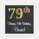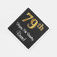 Den här snyggten, den lyxiga och elegantens pappra napkindesign har ett stort ordnummer "79:e" med faux/imitation guld-liknande gradient mönster, tillsammans med födelsedagsmeddelandet hälsning "Lycklig 79:e födelsedag" och en redigerbar namn i ett skript-stil teckensnitt. Den har också en bakgrund med svart färgad. Elegantens födelsedag kan sådana pappra blöjor användas vid party i firande på någons sjuttionionde födelsedag. [~Z0000516]
