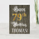 På framsidan av denna högtidliga och lyxiga hälsningskort med födelsedag finns meddelandet "Lycklig 79:e födelsedag" och en anpassningsbar som tar emot namn. En del av budskapet är skript-stil, det stora antalet "79:e" har ett imitation/faux-guld-inspirerat utseende mönster, och bakgrunden har ett faux/imitation-härdat mönster. Insidan har ett redigerbart hälsning-födelsedagsmeddelande, eller så kan det kanske rensas och lämnas tomt om ett meddelande ska skrivas för hand i stället. Ett sådant här redigerbart födelsedag i finare kan skickas för att fira någons sjuttionionde födelsedag. [~Z0000561]