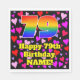 Den här pappra napkin-designen för roligt och grattis på födelsedagen har ett stort nummer "79" med en regnbågsspektrumövertoning som inspirerat mönster. Det innehåller också budskapet "Lycklig 79:e födelsedag" och ett redigerbart namn. Bakgrunden är en mönster av lila-, rött- och rosa hjärtformer av olika storlek. Lycklig, sådana här vänliga pappra servetter kan vara roligt till använda vid en födelsedagskalender som hålls i firande på någons sjuttionionde födelsedag. [~Z0000550]