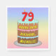 Den här roligten och den pappra napkindesignen med hög födelsedagskalas har en tecknad-stil-bild av en treskiktad födelsedagskalas med numeriskt formade ljus ovanpå som visar nummer "79", tillsammans med meddelandet "LYCKLIG 79 BIRTHDAY," och anpassadets mottagare namn. Bakgrunden har ett flerfärgat pastellfärgat regnbågsspektrum som inspirerat övertoningen mönster. Färgfulla pappra servetter som dessa kan användas när man är värd för en födelsedagsfest till någon i firande på 79-årsdagen. [~Z0000623]