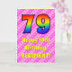 Framsidan av detta uppslag och den 79:e födelsedag-matade hälsningskortet lycklig har ett stort nummer "79" med en färgstark mönster inspirerad av ett regnbågsspektrum. Det innehåller också budskapet "Lycklig 79:e födelsedag", följt av en redigerbar mottagare namn. Bakgrunden till framsidan har en ljus rosa och mörk rosa rand mönster som innehåller levande hjärtformer av rosa. Insidan innehåller ett hälsning-meddelande från anpassningsbarnas födelsedag, eller kan kanske tas bort och lämnas tomt om ett meddelande ska skrivas för hand i stället. Ett sådant här födelsedagskort i anpassningsbarna kan vara ett roligt sätt att skicka önskemål till någon som firar sin sjuttionionde födelsedag. [~Z0000416]