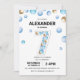 7-års födelsedagsfest, blå och gul ballongpojke inbjudningar