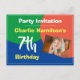 inbjudan till en speciell födelsedagsfest med namn och antal år. Födelsedagsinbjudan postkort för en 7-åring. Lägg till ditt eget foto och ändra storlek efter behov.