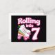 Denna skridskofestdesign är perfekt för en rullskridsko-fest eller födelsedagstema för en 7-årig flicka. Om födelsedagsflickan älskar att rullskridsko kommer hon att ÄLSKA denna skridskofestdesign! Funktioner retro stil 'Rullar in i 7' födelsedagscitat med cool rullskridskografik med regnbågar & stjärnor som är roligt & unikt. Rolig rullskridsko-festdesign för en flickas 7-årsdag!
