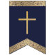En banderoll av flaggor som är lämplig för baptismer, första kommunions- eller religiösa-bekräftelser. Det blå flaggor-marinen har dekorationerna i vintage guld ro på gräns. Brev är gyllene socklar. Budskapet är "Välsigna dig" följt av ett 7 brev namn som säger att du bör byta brev mot brev (standard är Michael). Det finns i början ett guld-kor: dekorationerna i guld ro kommer från vintage bok från 1912, från Geoffrey Chaucers fullständiga politiska verk, som nu är offentligt tillgängliga.