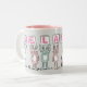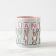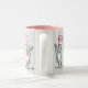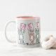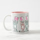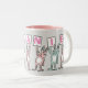Roligt Rabbit Design Mugg för någon med 7 Brev Namn. Exempel namn är Melanie. Cute baby-kaniner. Roligt och vit Mugg med illustration av kaniner i rosa och blått. Kaninerna håller upp kort för att stava ut namn.