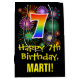 Den spännande, färgstarka och roligt-födelsedagskalendern i presentsäcken har ett stort nummer "7" med en regnbågsspektrumgradient stil mönster, tillsammans med budskapet "Lycklig 7:e födelsedag" och en personlig mottagare namn. Den har också en färgstark bakgrund som inspirerats av mönster, som ser ut att bränna berömda fyrverkerier. En dylik presentpåse på födelsedagen kan användas när en gåva eller present i firande på någons 7:e födelsedag är ge. [~Z0000509]
