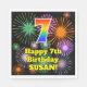 Den spännande och roligt pappra napkin-designen har ett stort nummer "7" med en färgstark regnbågsspektrumövertoning som inspirerade mönster, tillsammans med budskapet "Lycklig 7:e födelsedag" och ett anpassade namn. Bakgrunden är ett dynamiskt och färgstarkt mönster som inspirerats av att det ser ut som om det brinner berömda fyrverkerier. Födelsedag som pappra blöjor som denna kan vara roligt till använda vid en födelsedagsfest som hålls för någon som firar sin 7:e födelsedag. [~Z0000574]