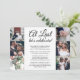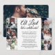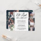 Bjud in familj och vänner till en elegant bröllopsfest med denna stilrena moderna bröllopsinbjudan med fotokollage och texten "At Last Let's Celebrate". All text är enkel att anpassa för alla typer av evenemang, inklusive mottagning efter vigsel, förnyelse av löften, andra bröllop, 1-årsfirande, cocktailparty eller middag. Anpassa den med dina egna detaljer, som datum, dresscode, rsvp, webbplats, etc. (TIP: Ett enkelt sätt att centrera ett foto exakt som du vill är att beskära det innan du laddar upp det till Zazzle.) Den moderna minimalistiska svart-vita designen har sju bilder av det nygifta paret, trendig handskriven kalligrafi och chic skrivmaskinstypografi. Oavsett om ni rymde och gifte er i smyg, hade ett mindre bröllop eller om er speciella dag blev uppskjuten på grund av pandemin, kan festen ändå börja. Grattis till bruden och brudgummen!