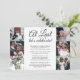 Bjud in familj och vänner till en elegant bröllopsfest med denna stilrena moderna bröllopsinbjudan "At Last Let's Celebrate" med fotokollage. All text är enkel att anpassa för alla typer av evenemang, inklusive en efterfest efter vigsel, ceremoni för förnyade löften, andra bröllop, mottagning för 1-årsjubileum, cocktailparty eller middag. Anpassa den med detaljer efter eget val, såsom datum för bröllopet, dresscode, rsvp, webbplats, etc. (TIP FÖR BILDPLACERING: Ett enkelt sätt att centrera ett foto exakt som du vill är att beskära det innan du laddar upp det till Zazzle-webbplatsen.) Den moderna minimalistiska svart-vita designen har sju bilder av det nygifta paret, trendig handskriven kalligrafi och chic skrivmaskinstypografi. Oavsett om ni rymde, hade ett mindre bröllop eller om er speciella dags firande fick skjutas upp på grund av en Covid-19-relaterad