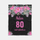 Elegantens utformning för en 80:e födelsedagsfest med rosan "80 och fantastisk" och ett skript namn som är förskönat av en feminin vattenfärg blommor med svart bakgrund. Anpassa ålder, text, namn och bakgrund färg.