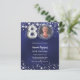 En modern fotoinbjudan till snyggten för en 80:e födelsedagsfest. En marin blå bakgrund, dekorerad med stjärnor. Den blå färg är ojämn. Anpassa och lägg till information om foto och party. 1 lakan = 1 inbjudan tryckt kant till kant.