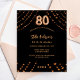 För en elegant 80:e födelsedagsfesten. En svart bakgrund. Dekorerad med ro guld stjärnor. Anpassa och lägg till namn, närmare uppgifter om party, födelseår. Namn är skrivet med ett handskript i stil. 1 lakan = 1 inbjudan tryckt kant till kant.