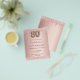 Observera att inbjudan är papper och mycket tunn. Kuvert ingår inte. Om du vill ha mer omfattande inbjudningar (samma design) kan du besöka vår butik. En modern, snyggt och glamorös inbjudan till 80:e födelsedagsfesten. En faux ro guld-metallisk bakgrund tittar med elegant faux guld glitter drop, målardropp. Namn är skrivet med ett modernt skript för färgaden ro guld i mörk, skrivet med stil. Anpassa och lägg till information om party. Nummer 80 skrivs med ett stil-skript med ballong.