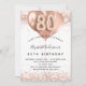 För en elegant på 80 år. En vit bakgrund. Dekorerad med ro guld, rosa faux glitter, gnistor och ballonger. Anpassa och lägg till information om namn och party. Namn är skrivet med ett handskript stil, nummer 80 med ballong stil typsnitt.