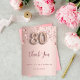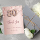 Tack för 80-årsdagen. En övertoningsbakgrund i ro guld färg. Med ro guld bländande stjärnor. På framsidan: nummer 80 skrivet med ett stil-ballong, ett handskript med stor mörk ro guld och texten: Tack, text, rubrik och datum. Tillbaka: Anpassa och lägg till tackkort och namn.