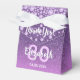 En elegant, glamorös och gigantisk 80-årsdagarsväska. färgad för lila och rosa av gradient faux glitter med faux diamant sprinkle. Mallar för namn, 80 år och ett datum. Födelsedatum eller datum för party/årsdagen. Med texten: Tack! Vit och ljus rosa färgad brev. Namn är skrivet med ett handskript i stil.