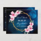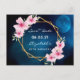 A Spara datumkortet för en tropisk 80:e födelsedagsfest. På framsidan: Trendig tropiska stil. Med ett faux guld geometric ram dekorerat med rosa hibiscus, blommor tropiska blommigtar med en viss grad av grönenergi. Ett mörk blått tropiskt nattetid himmel med fullt som bakgrundsmallar för namn och datum. Vit brev. Namn och texten: Spara datumet är skrivna med ett modernt handskript i stil. Tillbaka: blå himmel med närmare uppgifter om måne och party.
