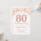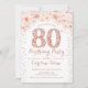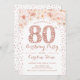 80-års inbjudan för kvinnor. Elegant blomsterinbjudan i falskt glitter roséguld och vitt. Innehåller diamantnummer, script-teckensnitt och rosafärgade rosor. Perfekt för en stilren vuxen milstolpe födelsedagsfirande.