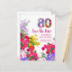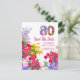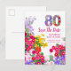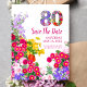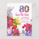Fira en milstolpe i full blom med detta livfulla 80-årsfirande Spara datumet postkort, med en färgrik blomsterfylld ”80” och en ljus trädgårdskant.