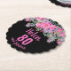 80:e födelsedag: Svart rosa blommigt-skript namn Papper Underlägg. Anpassa namn och ålder.
