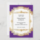 En elegant, mycket glamourös och chic, vit och guld glitter fotofram med en vit inlägg är omgiven av en vacker lila lapis bakgrund som har falska guld snäckkantiga hörn. Den främre gyllene banderollen upprepas på baksidan och ramar in vita mallar för din personliga text.