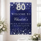 Ett välkommet poster för en 80:e födelsedagsfest. En marin blå bakgrund med elegant faux silver-stjärnor. Den blå färg är ojämn. Anpassa och lägg till namn och text. Vit brev.