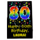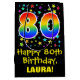 Den klara, spännande och roligt-presentsäckens matlagningsdesign har ett stort nummer "80" med en regnbågsspektrumövertoning stil mönster, tillsammans med meddelandet "Lycklig 80:e födelsedag" och en personlig mottagare namn. Den har också en färgstark bakgrund i mönster med stjärnformer av olika storlek. En dylik presentsäck på födelsedagen kan vara ett roligt sätt att slå ihop en gåva eller present som ges till någon som firar sin åttioårsdag. [~Z0000510]