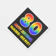 Den här färgstarka, roligt- och fräcka pappra napkindesignen har ett stort nummer "80" och meddelandet "GRATTIS PÅ FÖDELSEDAGEN,", som båda har en regnbågsspektrumövertoning som inspirerar mönster, tillsammans med en fet gult redigerbar mottagare av namn. Bakgrunden är svart på färgad. Roligt, skräddarsydda pappra blöjor som denna kan användas vid en party som hålls för att fira någons åttioårsdag. [~Z0000476]