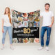 Modern 80-årsfirandefilt med en svart bakgrund i snyggten som kan ändras till vilken färg som helst, en 20-fotosamlingsmall som sträcker sig över åren, talesättet "jublar till 80 år", deras namn och datumet.