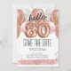 hej 80 födelsedagsfester sparar datumet för rosa glitter-ballonger. Spara datumet ro guld-ballonger med faux rosa glitter. Elegant, trendig. Lätt att justera mallen.