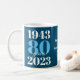 En fet och slående 80-årsdag (eller någon annan ålder) mugg. Denna speciella milstolpe-födelsedag i mugg består av födelsedag och födelsedatum i vit typografi - där åldern markeras med blått. Lägg till ett meddelande för en anpassningsbar-gåva.
