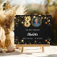 En snyggt svart bakgrund med faux guld-stjärnor. Lägg till foto, namn och text. Åldersnumret skrivs med ett stil-teckensnitt för ballong. Rygg: lägg till texten.