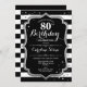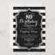 80:e födelsedag - Svartvit Rand Silver Inbjudningar