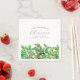 Perfekt bord-decor under en decemberfödelsedagsfest. Holly är födelseblomman den månaden. Den bildar en söt vattenfärg grund gräns på denna festila personlig napkin. Namn, ålder och födelsedatum för födelsedagen placeras ovanför den med hjälp av elegantens kalligrafi och typografi. All text kan redigeras.