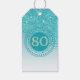 80:e födelsedagen i Modern Falling Teal Blue Glitt Presentetikett