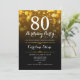 80:e födelsedagsinbjudan. VARJE AGE-Elegant är svartvit med faux glitter guld borkeh ljus. Vuxens födelsedag. Har diamanter och skriptteckensnitt. Manar eller kvinnor i inbjudan. Perfekt för en snyggt födelsedagsfest. Berätta om du behöver anpassa dig ytterligare.