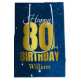En fet och slående 80-årsdagars presentväska. Denna speciella milstolpe-födelsedagspåse består av typografin "Lycklig 80-årsdagen" på en blå bakgrund. Lägg till en namn för en anpassningsbar-gåva.